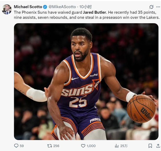 NBA的严酷现实,在菲尼克斯太阳队消失的决定中昭然若揭!球队官方宣布,正式解雇了季前赛拿下35分7篮板9助攻的贾里德·巴特勒,并将正式合同交给了他的直接竞争对手乔丹·古德温。这一决定让不少球迷和专家表示不理解,也让人们再次看到了NBA商业决策的冷酷和残酷。仅看季前赛数据,这位25岁的管家不应该被放弃。四场季前赛,他场均上场21分钟,贡献15.5分3.3篮板4.3助攻1.8抢断,投篮命中率47.1%+三分球命中率35.3%,在得分和效率上略胜古德温(古德温场均12.5次双拳,投篮命中率46.2%,投篮命中率38.9%)。三分球射程)。尤其是在对阵湖人队的“诸神游戏”中,在布克、杰伦格林等主力缺阵的情况下,他几乎一人扛起太阳队的进攻。 9次助攻、0失误的表现让人们看到了他的组织潜力。但太阳队最终的选择却推翻了“数据至上”的理念。那么太阳队为何做出如此令人惊讶的决定呢?深入分析两人的技术特点或许就能揭晓答案。巴特勒虽然个人能力出色,但总体面貌却相当差劲。他的打球风格更喜欢单独打球,需要大量的控球支持。而他对阵湖人队的爆发是在布克和杰伦·格林等关键球员缺席的情况下实现的。回顾古德温,他是一个典型的团队合作者,愿意做脏活,不去争夺球权。他非常适合角色球员的位置。更重要的是,古德温拥有惊人的2.08米臂展。相比巴特勒1.93米的臂展,他有着天生的防守端占据优势。在注重防守和空间的现代篮球时代,身体条件无疑更受球队青睐。两位球员都是2018届新秀,但职业轨迹却截然不同。那一年缺阵后,古德温希望能在奇才队站稳脚跟。职业生涯出战150场常规赛,场均贡献6.2分、3.8个篮板和2.4次助攻。巴特勒在第40顺位被选中,在148场常规赛中场均得到6.7分、1.5个篮板和2.8次助攻。如今,古德温以团队至上的打法赢得了太阳队的信任,而拥有更好数据的巴特勒则要继续寻找新的机会。距离常规赛揭幕战仅剩三天,NBA的残酷筛选仍在继续。对于大多数训练营合同球员来说,巴特勒的毕业是他们必须面对的现实。在这个优胜劣汰的联盟里一直以来,一瞬间的闪光不足以立足。团队需求和战术灵活性往往比个人数据更重要。随着常规赛的临近,下一站尼克·巴特勒仍然不知道,但这次经历无疑让他明白:NBA舞台从来不缺少得分手,而是能够加盟球队的“拼图型球员”。